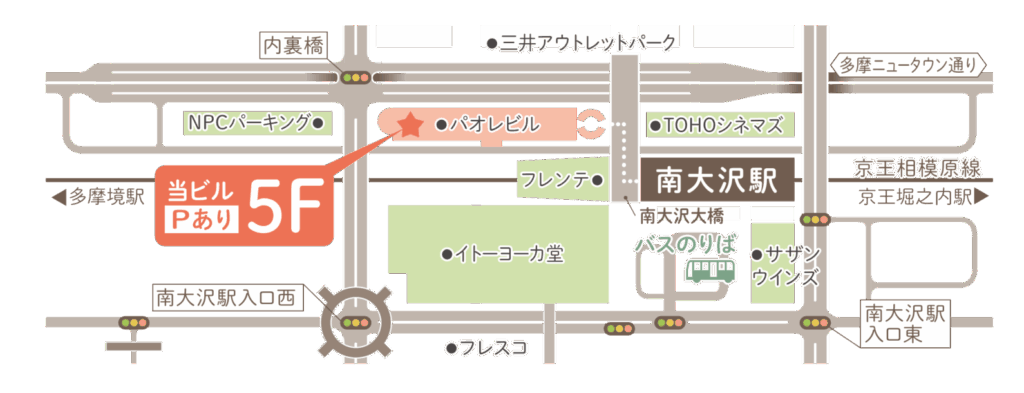 | 住所:〒192-0364 東京都八王子市南大沢2-2 パオレ5階 |