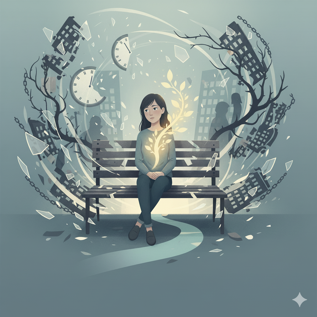 PTSDとは、災害、事故、暴力、虐待など、生命の危険を感じるような強い恐怖体験の後に生じる心の病気です。通常は時間とともに回復していくはずの心の傷が、1か月以上経っても癒えず、フラッシュバック(突然その時の記憶がよみがえる)、悪夢、過度な警戒状態などが続き、日常生活に大きな支障をきたします。